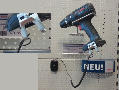 POS Alarm DUO ist zum Beispiel viele 1000 Male im Baumarkt- und Baustoffhandel zur Sicherung von Werkzeugen und Maschinen im Einsatz.